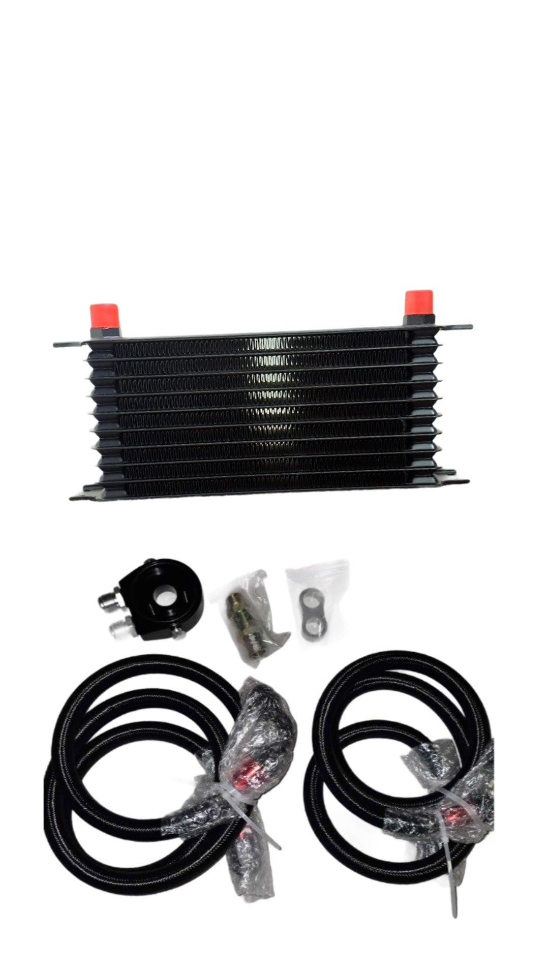 Transform your vehicle's transmission with our universal fit 10 Row Transmission Cooler Kit. With the option to use a custom-made or in-house bracket, this product offers superior cooling and flow, surpassing the limitations of factory systems. Experience maximum flow and cooling as it runs externally to the radiator. Elevate your driving experience with our premium product.